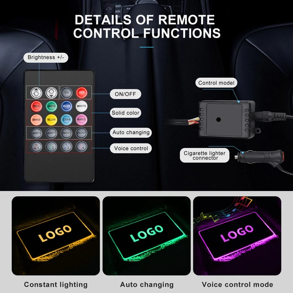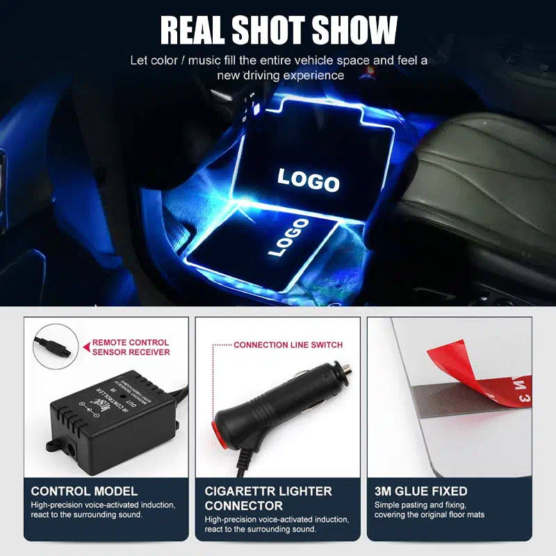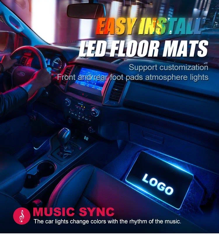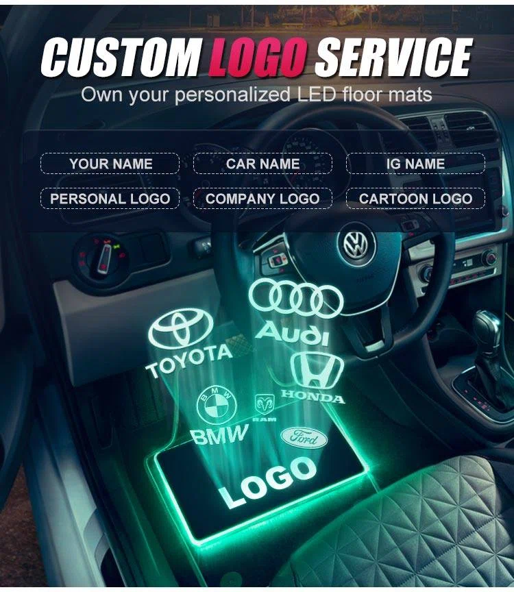 The LED car floor mat kit is a high-end car interior ambient light. It has a variety of light colors that can be adjusted. The light is not dazzling and creates a soft and relaxed atmosphere for passengers. Whenever it lights up, it displays a bright LOGO on the LED floor mat. It is definitely the best choice for upgrading car interiors!